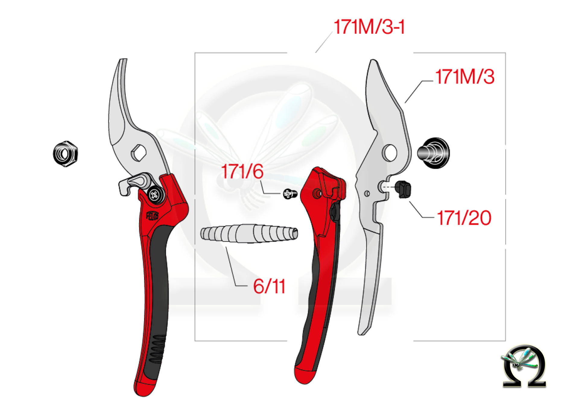Die Gartenschere FELCO 171M ist eine 170 Gramm leichte Bypass-Schere mit einer Länge von 200 mm und einen Schnittdurchmesser von 20 mm, die für Rechtshänder mit mittelgroßen Händen entwickelt wurde.
